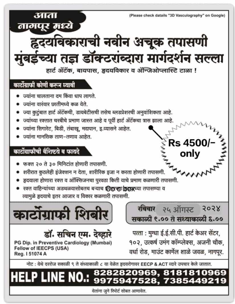 25 August 2024 camp in Mugdha EECP Heart care center Nagpur